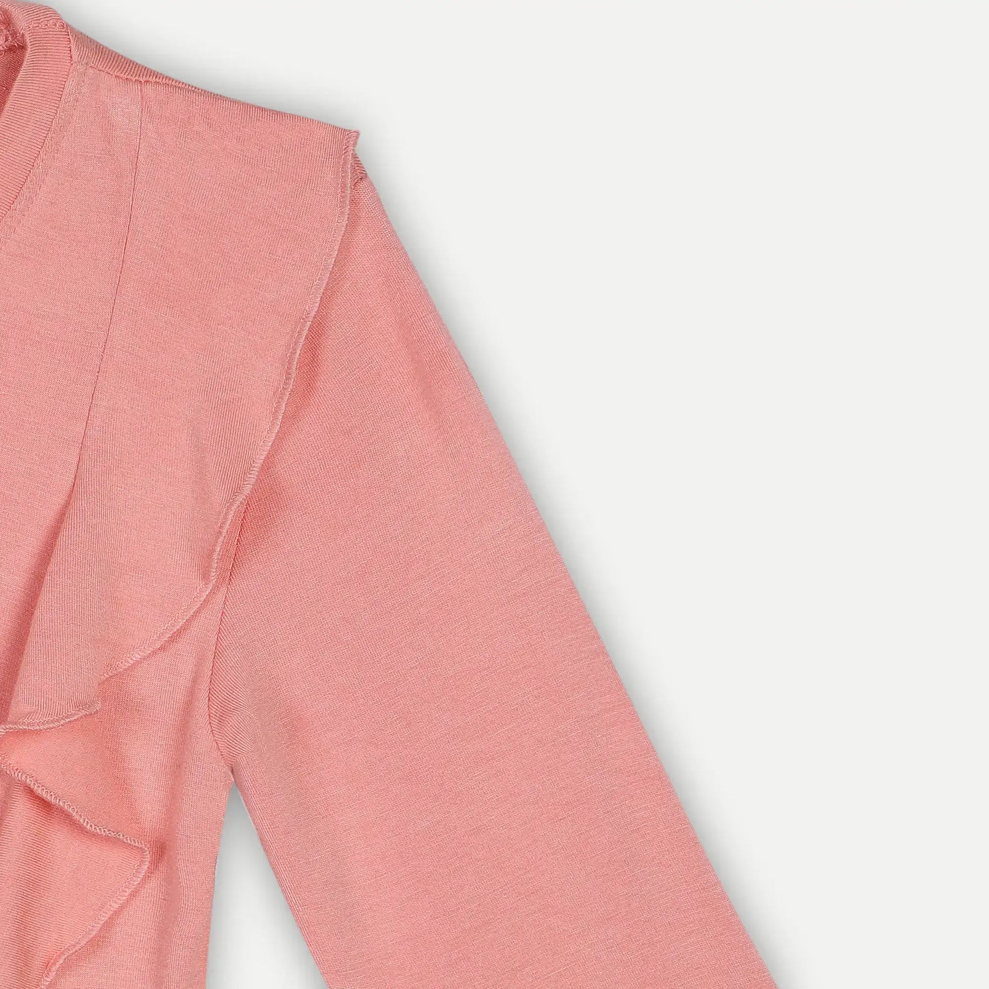 Pick this classic yet trendy ruffle top for your kid and use it for all day long comfort. You can also pair it with Denim, skirt or any printed bottom for a instant casual look.