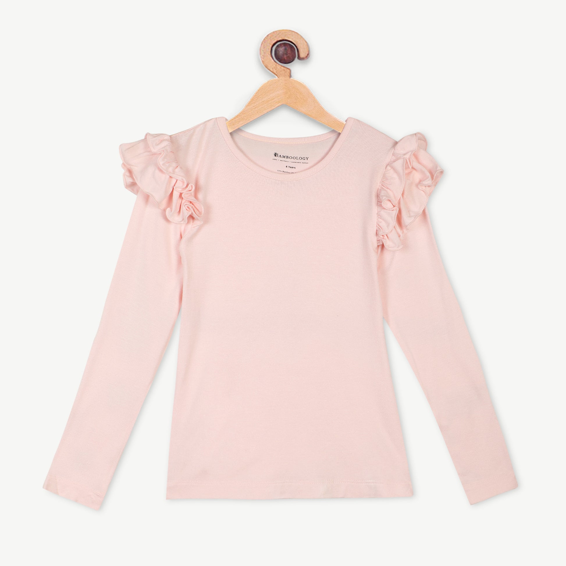 Bamboo Fabric Girl's Ruffled Shoulder Top | Anti-bacterial, Anti-viral Collection