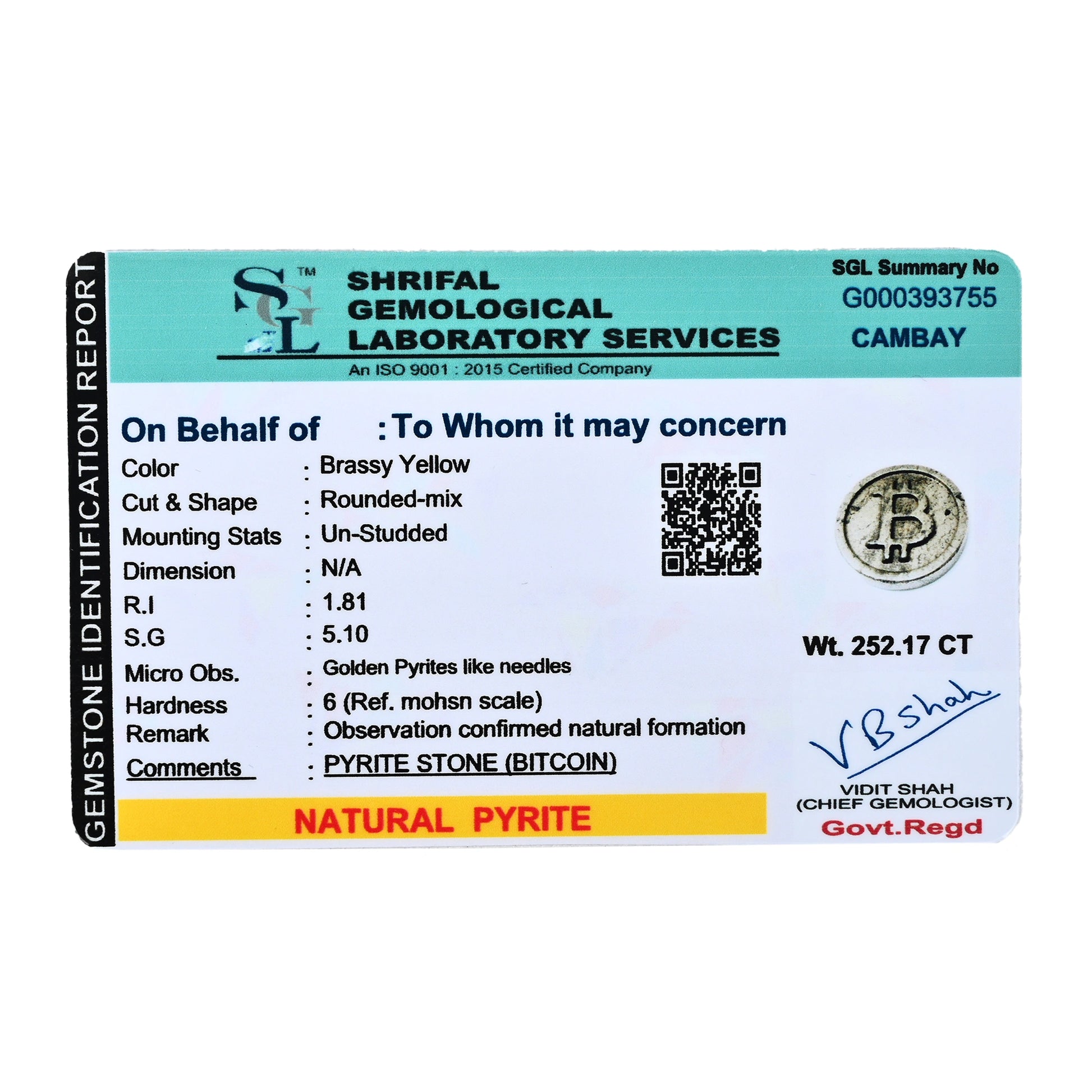 Genuine Pyrite Certification – Verified for mineral purity