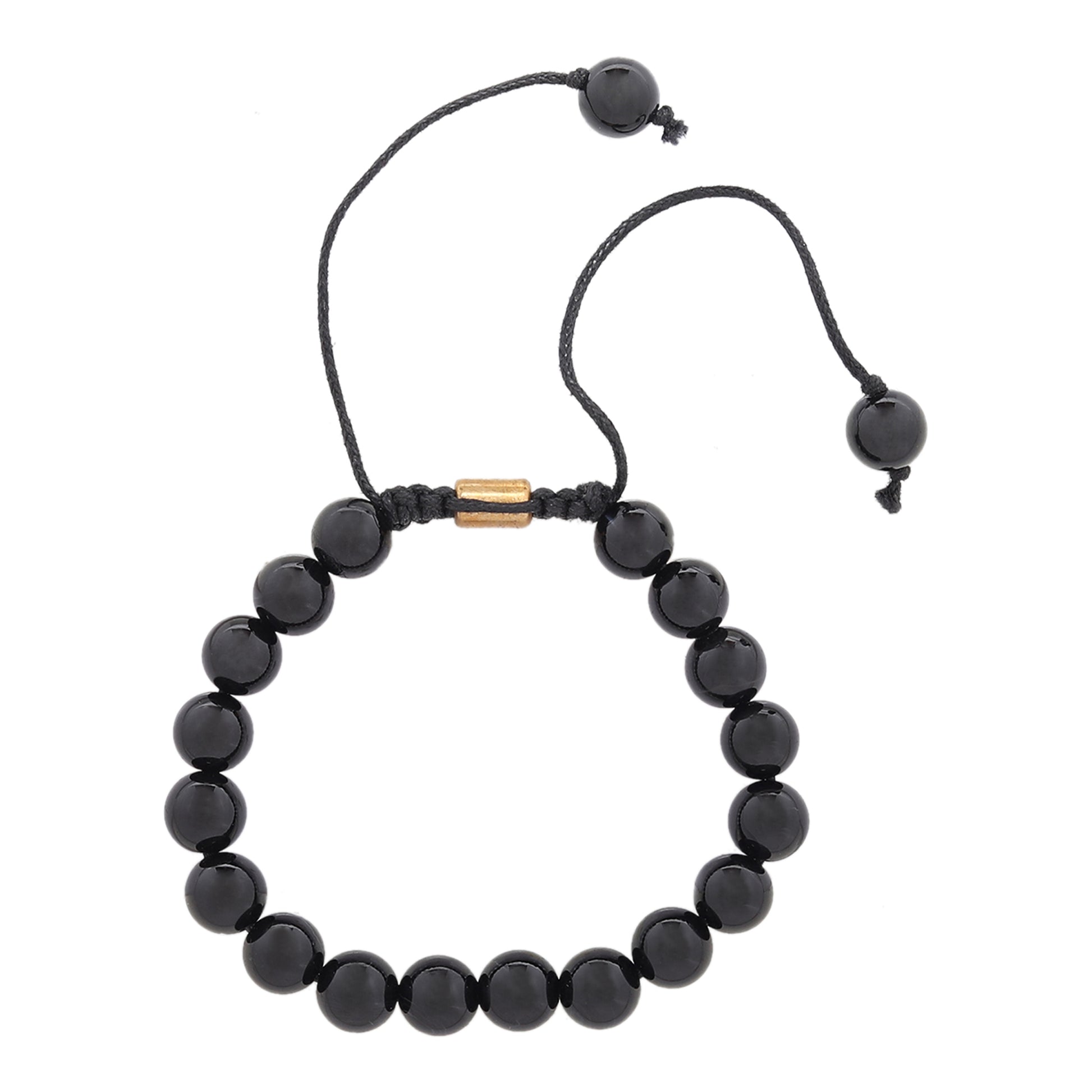 Original Black Tourmaline beads bracelet in two sizes. One with 18 beads for Small to medium and with 23 beads for Large to Extra large sizes. Finely woven with strong Cotton thread and closed with a metal adjuster for size adjustments. Pull the two loose strings to adjust the size according to your wrist and slide metal adjuster to loosen the grip. This beautiful Black bead bracelet comes in an attractive Velvet string pouch which makes easy to keep it safe.